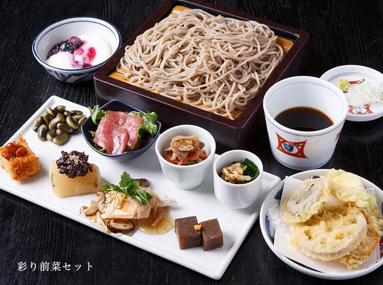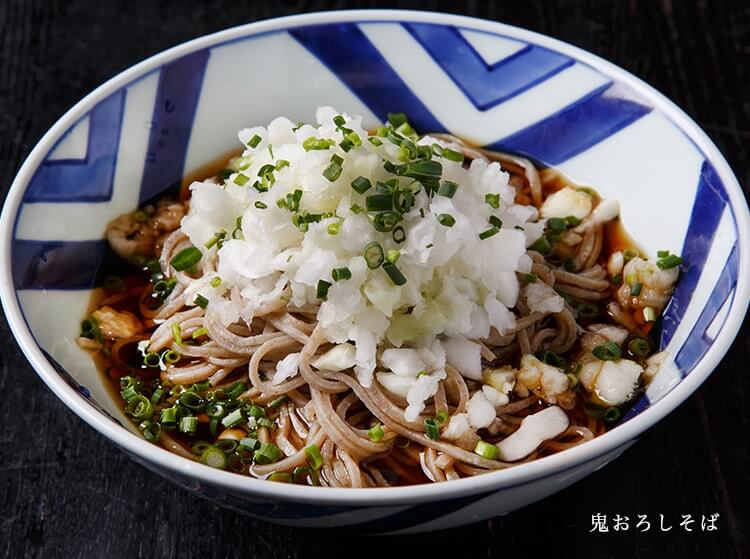 厳選したそば粉を特注の石臼で挽き、豊かな風味を保つ蕎麦は、職人たちが手打ちします。